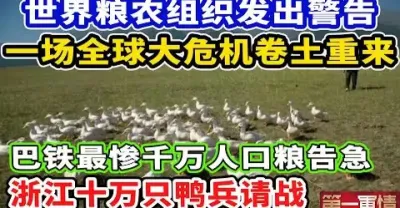 世界糧農組織發出警告,一場全球性的大危機捲土重來,巴鐵最慘千萬人口糧告急,浙江十萬隻鴨兵請戰