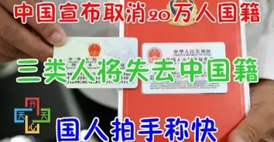 中國宣布取消20萬人國籍,三類人將永遠失去中國國籍,國人拍手稱快!