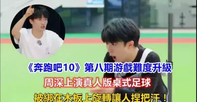 《奔跑吧10》第八期游戲難度升級,周深上演真人版桌式足球,被綁在木板上旋轉讓人捏把汗!#周深