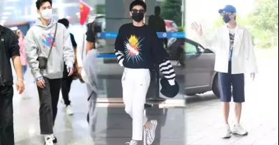 楊洋衛衣裡面疊穿格紋T恤,挺時髦。楊洋的休閒穿搭不僅讓身材與氣質方面展示得非常充分。