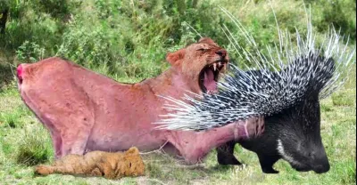 獅子大戰刺蝟!勇敢的刺蝟為了生存殺死了獅子 - 鬣狗與托皮