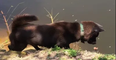 純黑田園犬,能打獵,能看家,還能捉魚!純黑