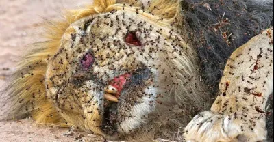 痛苦的獅子被飢餓的鱷魚殘忍襲擊偷走獵物結局意想不到
