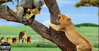 憤怒的母獅如何攻擊狒狒來為幼崽報仇?野生動物