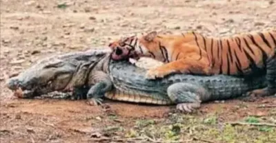 孟加拉虎大戰4米巨鱷,現實世界版「龍虎鬥」,戰況太慘烈