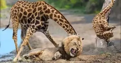 動物捕獵失敗瞬間,獅子遭長頸鹿1秒8拳暴揍,鱷魚直接被角馬爆頭