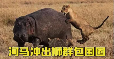 河馬上岸想閒逛一下,沒想到誤入獅駝嶺被獅群包圍了,它只做了一個動作就讓獅子愣住了?