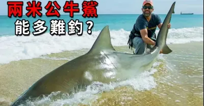 五個壯漢合力釣兩米公牛鯊,還一度被鯊魚拽趴,看見全貌倒吸涼氣