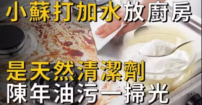 小蘇打兌水是天然的清潔劑,往廚房一放,陳年油污一掃光,再沒請過人來打掃