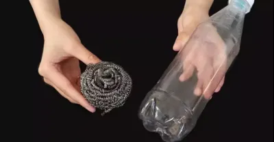 把鋼絲球塞進塑料瓶,放一個在廚房家人都愛用,方法省錢又實用