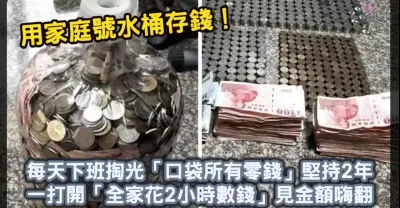 用家庭號水桶存錢!每天下班掏光「口袋所有零錢」堅持2年 一打開「全家花2小時數錢」見金額嗨翻:送自己年終獎金