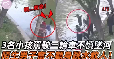 3名小孩駕駛三輪車不慎墜河,陌生男子奮不顧身跳水救人,讓人淚崩!#暖心 #暖心故事 #正能量 #淚目 #生活 #溫暖 #社會新聞 #老人 #感動 #暖心時刻