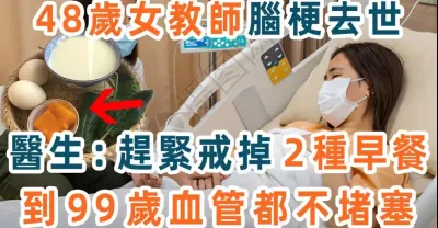 48歲女教師腦梗去世!醫生警告:這2種早餐趕緊扔掉,只要戒掉它,活到99歲都不會血管堵塞,從此遠離中風腦梗【養生1+1】