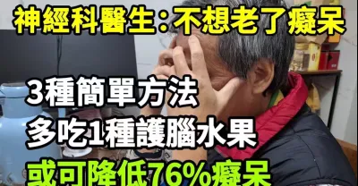 神經科醫生:不想老了痴呆,3種簡單方法,多吃1種護腦水果,或可降低76%痴呆風險,早知道早受益。