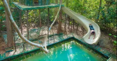 Build Swimming Pool Water Slide Around Secret Bamboo House
