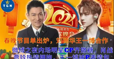 【TGN 通訊12月22日】春晚節目單出爐,劉德華王一博合作; 微博之夜內場明星CP齊撒糖,肖戰賈玲熱情擁抱,王一博被P表情包