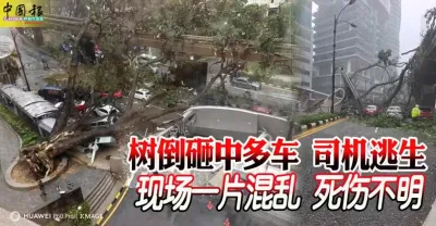 樹倒砸中多車 司機逃生 現場一片混亂 死傷不明