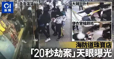 海防道劫案.天眼曝光|5匪撲櫃20秒職員走避 多警擎槍一網成擒|01新聞|尖沙咀|珠寶店