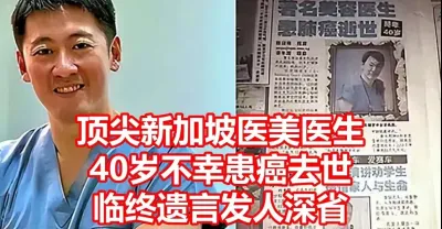 頂尖新加坡醫美醫生 40歲不幸患癌去世 臨終遺言發人深省