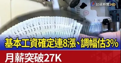 基本工資確定連8漲、調幅估3% 月薪突破27K