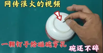 網傳很火的視頻,一顆釘子給瓷碗穿孔,碗還不碎,現場演示給你看