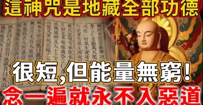 地藏菩薩所有功德凝聚的神咒,很短,但能量無窮!人只要念一遍,就永遠不會墮入惡道!