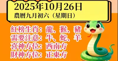 明日小運播報~2025 年 10 月 26 日(星期日)農曆九月初六