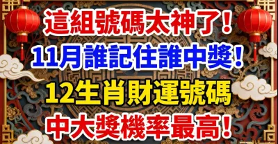 這組號碼太神了!11月誰記住誰中獎!12生肖財運號碼中大獎機率最高!