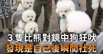 3隻比熊對鏡中狗狂吠 發現是自己後瞬間社死