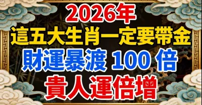 2026 年,這五大生肖一定要帶金,財運暴漲 100 倍,貴人運倍增