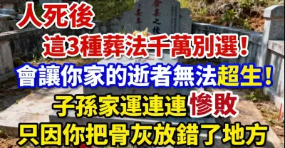 人死後,這3種葬法千萬別選!會讓你家的逝者無法超生,子孫家運連連慘敗,只因你把骨灰放錯了地方