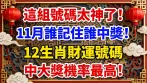 這組號碼太神了!11月誰記住誰中獎!12生肖財運號碼中大獎機率最高!