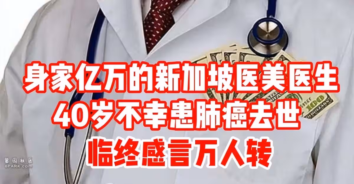 年收入近9億!40歲美容醫師「被診斷肺癌晚期」 不到半年逝世「臨終反思感言」被瘋轉:值得深思!
